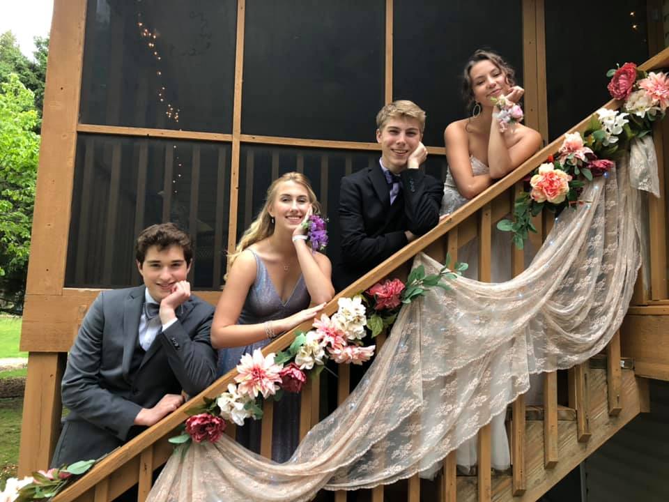 We took pictures in the Japanese garden. Kooka and three of her best friends came to our backyard for a four course meal of appetizers, salad, shrimp alfredo, roasted bacon brussell sprouts and a dessert tray all served on great-grandma Leora's china. There was hugging and dancing and more photos and a bonfire, and nobody really cared that it was Monday so they stayed up until 2 in the morning. The girls wore their dresses, had wrist corsages and the guys gallantly gave up their jackets when the night got a little chilly. I have no idea what they did if they needed to pee because nobody came into our house the entire time.